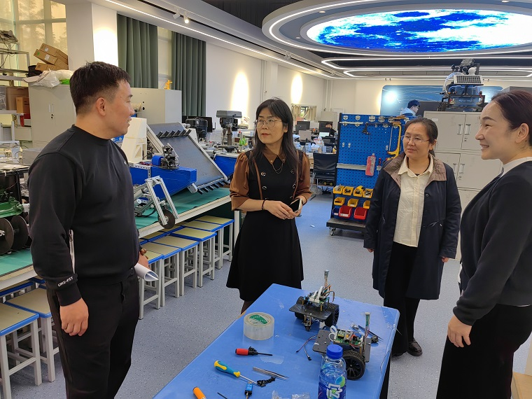 在智能机器人实验室、电工电子实验室、CAD实验室,调研团队仔细查看了设备配置标准与日常管理流程,详细询问了实验教学与科研项目的结合方式,并深入实验课堂进行了观摩,对实验室规范化的管理体系和高效的教学支撑能力表示赞赏。