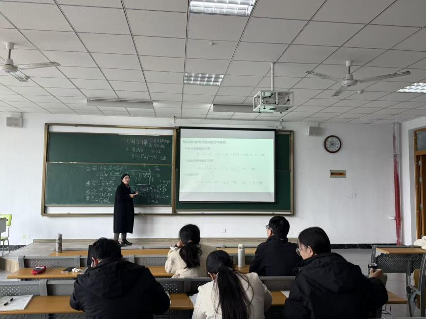 贺娟老师聚焦“稳态运行时输电线路的功率关系”,以“功率传输极限与稳定控制”为主线,采用“等效电路—数学模型—工程应用”的递进式教学逻辑。在基础理论部分,贺娟老师首先推导了输电线路的π型等效电路参数,并基于相量图分析了有功功率、无功功率与电压、电流相位角的关系,重点推导了“自然功率”“静态稳定储备系数”等核心概念的数学表达式。在案例教学环节,她以“某220kV输电线路重载运行”为背景,引导学生计算线路在正常、检修、故障后等不同工况下的功率分布,讨论电压降落与功率损耗的优化方案。