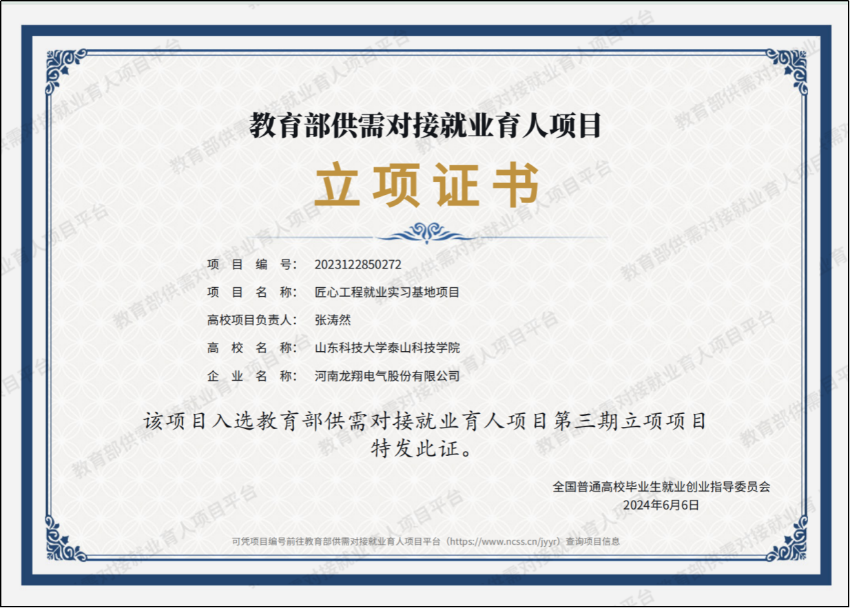 在协同育人模式创新上,学校积极推动各学院与行业龙头企业共建特色培养载体,2023年指导智能工程学院先后与鲁普耐特集团共建“鲁普耐特工程班”、与上海清芸机器人有限公司共建“人形机器人实习实训特色班”,探索出应用型人才校企联合培养的新路径;2024年6月,学校推动智能工程学院与河南龙翔电气股份有限公司、山东栋梁科技设备有限公司合作共建的两个实习基地项目,成功入选教育部供需对接就业育人项目第三期立项名单,进一步完善了校企协同育人机制。