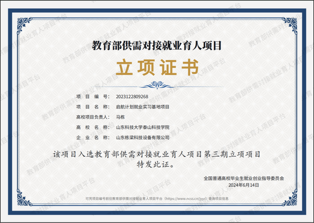 学校推动产教融合模式从人才培养延伸至科研合作领域,鼓励各学院与企业开展深度科研协作,实现教学与科研双向赋能。2023年12月,学校指导智能工程学院与山东森宇精工科技有限公司联合申报的省级科技进步奖荣获三等奖,实现了产教融合科研成果的重要突破;2025年9月,学校教师指导的省级大学生创新创业训练计划项目顺利结题,充分彰显了学校师生协同创新的扎实成效与良好态势。